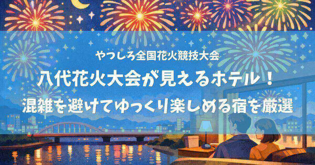 八代市内には、部屋の位置や階数によって花火が見える可能性があるホテルもあり、混雑を避けたいカップルや家族連れに選ばれています。